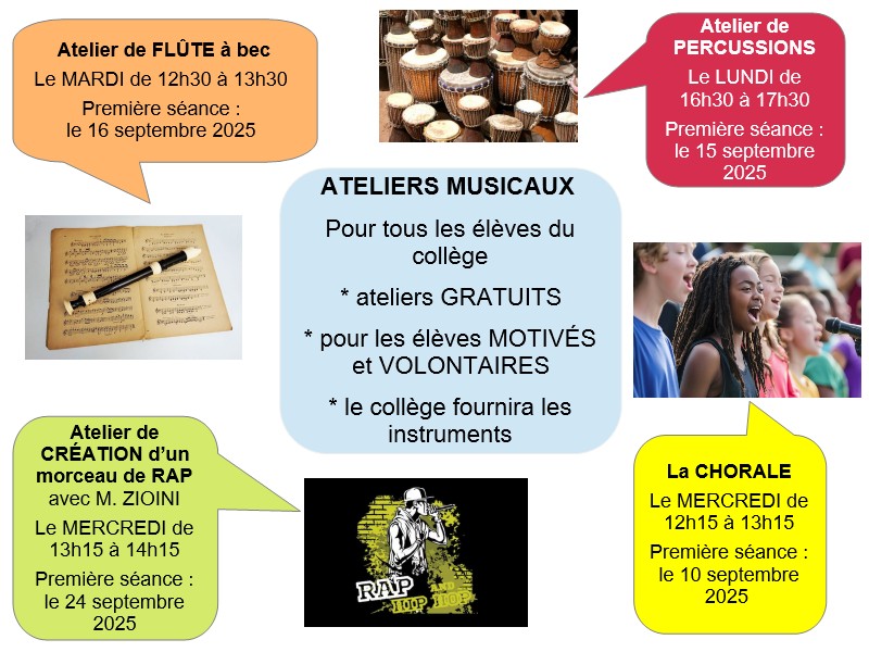 - Ateliers musicaux :